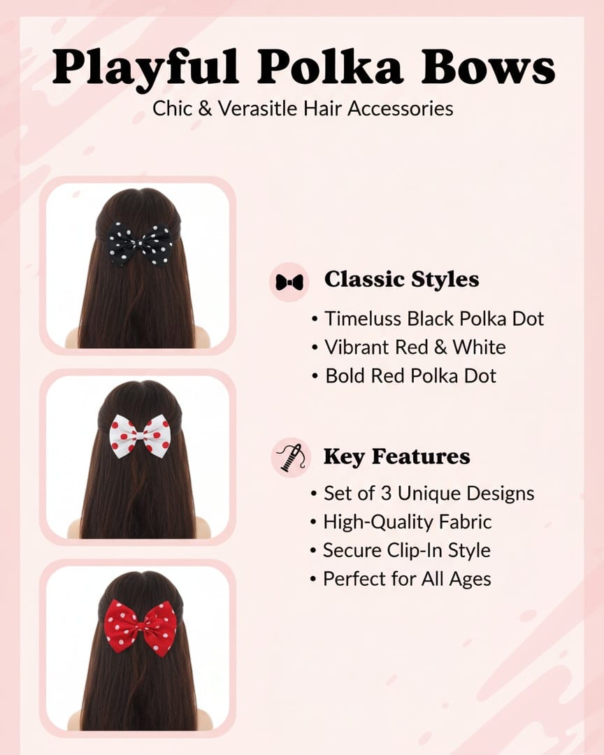 • Cute Polka-Dot Design – Adds charm, elegance, and a playful touch to your hairstyle.