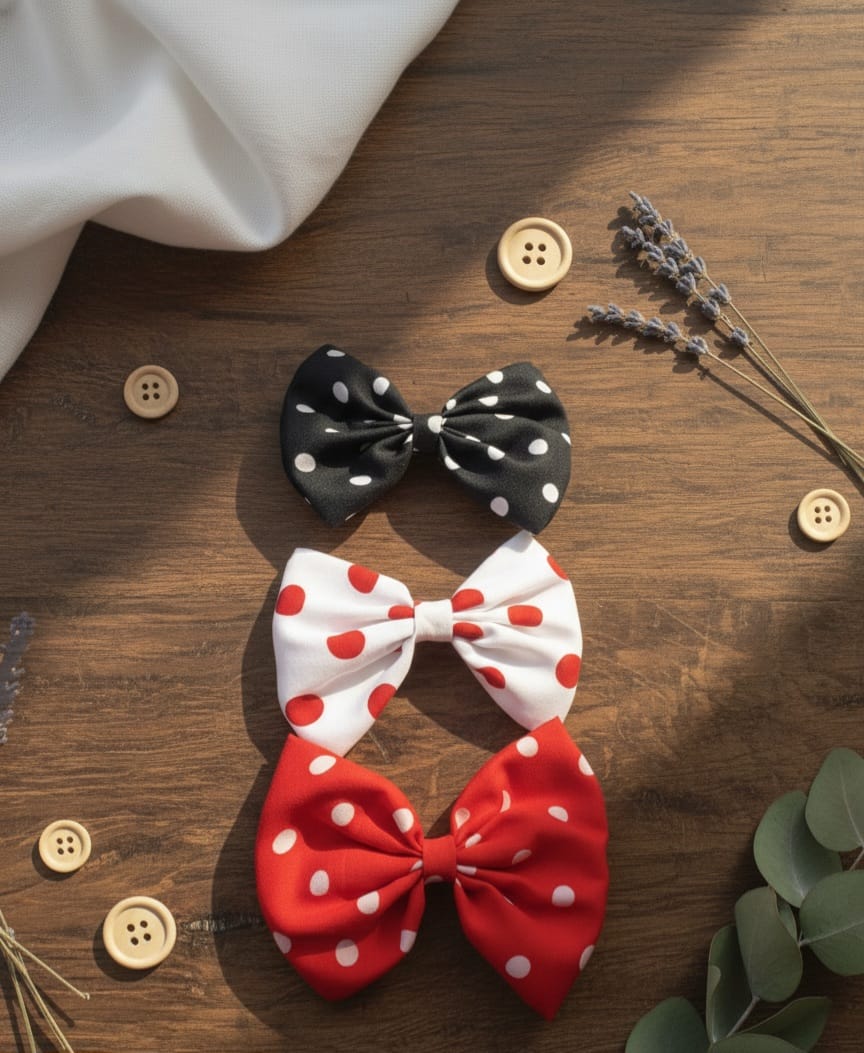 Elevate your everyday style with this Playful Combo, designed to bring a cheerful and charming touch to any look. Made with soft quality fabric, these bow clips feature adorable polka-dot patterns that instantly enhance your hairstyle—whether you’re heading to school, work, a family outing, or a party.
