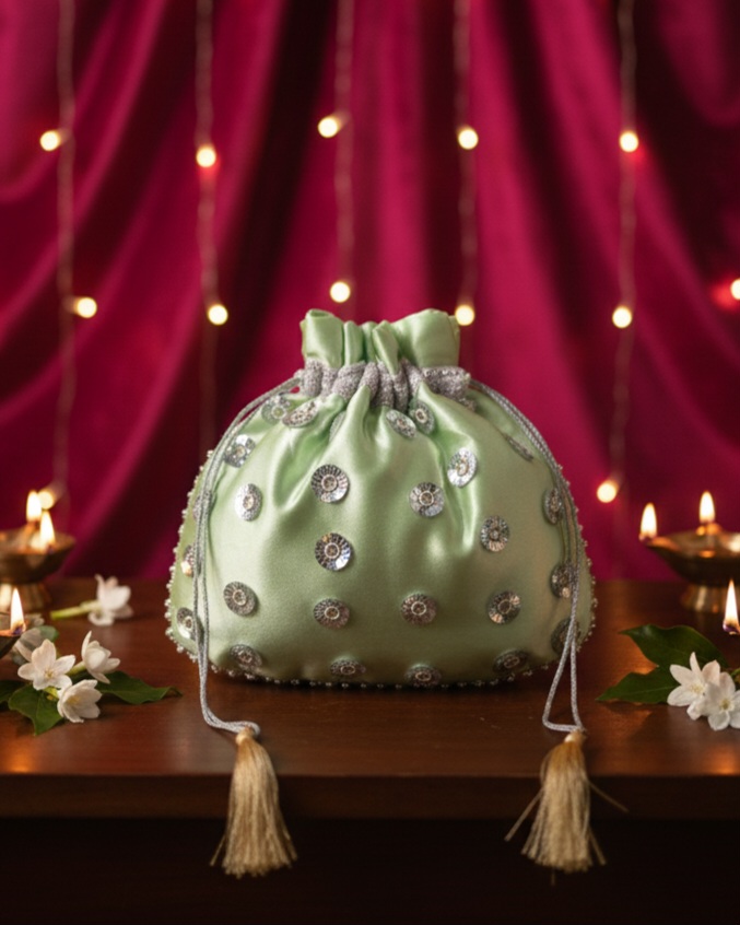 Versatile Use: Perfect as a luxury jewelry pouch, a wedding “batwa,” or a sophisticated way to present festive favors.