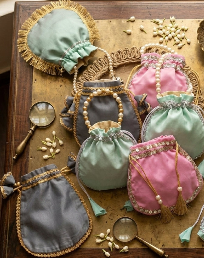 Add a touch of regal sophistication to your ethnic ensemble with our handcrafted Silk Potli Bags. Designed for the modern woman who loves traditional roots, these bags are the perfect accessory for weddings, Diwali celebrations, or any festive occasion where you want to stand out.