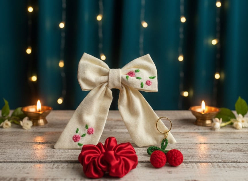 Intricate Hand-Embroidery: The roses are carefully stitched by hand, ensuring a unique, artisanal finish for every bow.
