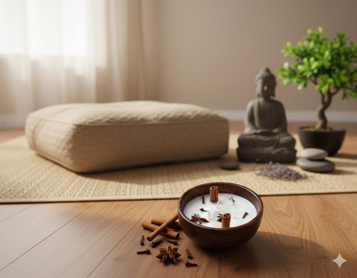 Enhance your space with our spice-infused wooden bowl candle. Featuring a unique arrangement of whole spices and a three-wick design for an even burn, this handcrafted candle doubles as a reusable decorative bowl once the wax is gone.