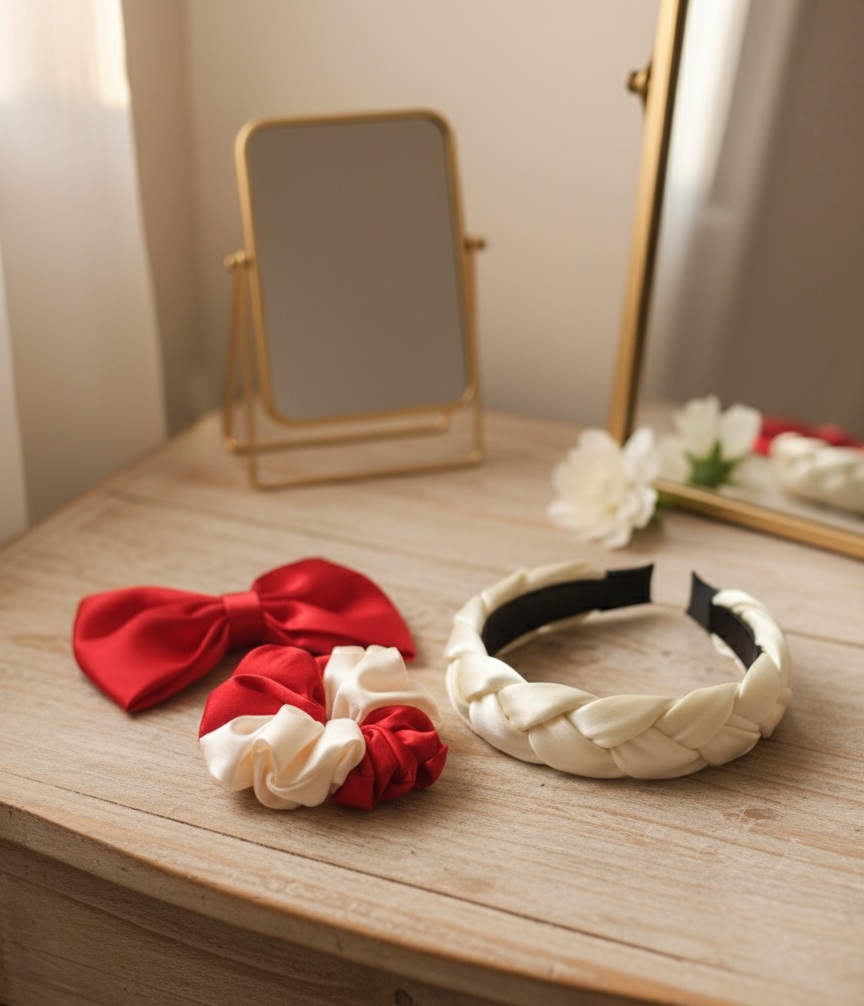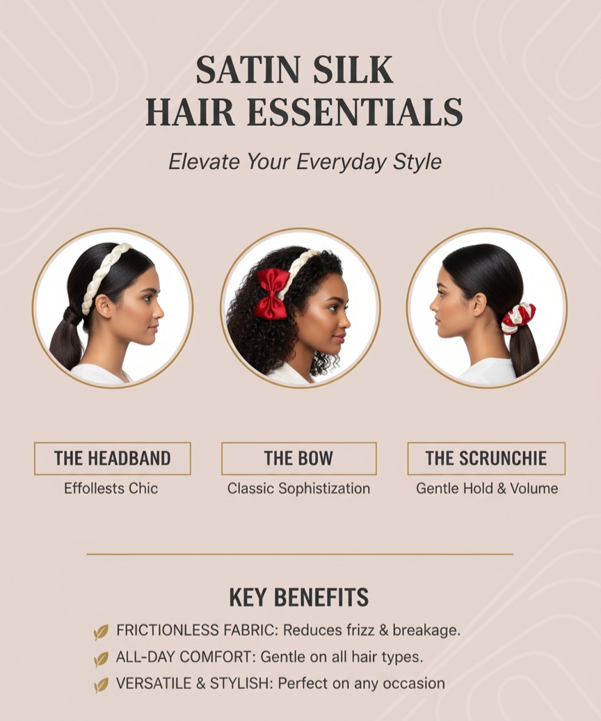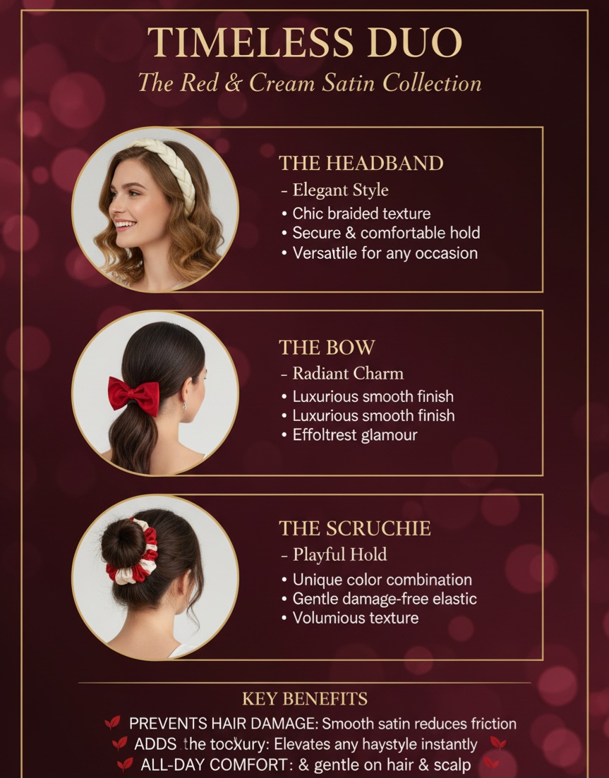 Complete Versatility: This ensemble includes Bows (for accents), Scrunchies (for gentle hold/volume), and Braided Headbands (for effortless styling).